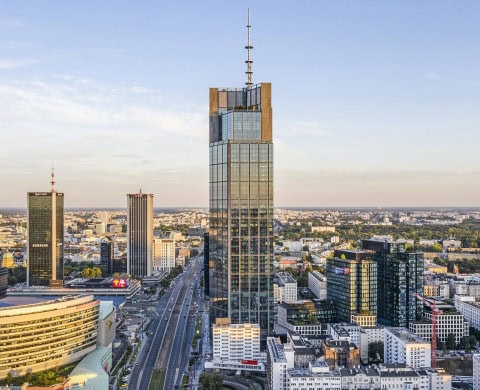 Varso Tower jest najwyższą częścią wielofunkcyjnego obiektu zrealizowanego przez HB Reavis, w którego skład wchodzą biura, hotel, centrum innowacji, restauracje, kawiarnie, klub fitness i przychodnia. Wielokrotnie nagradzana inwestycja stała się jednym z nowych symboli centrum Warszawy. Swój udział w realizacji kompleksu zaznaczyły liczne rozwiązania marek Grupy Saint-Gobain, które przyczyniły się do poprawy bezpieczeństwa, komfortu akustycznego oraz efektywności energetycznej obiektu. Dzięki potrójnym szybom zespolonym COOL-LITE SKN 176II marki GLASS i zastosowanym w nich ramkach dystansowych SWISSPACER zwiększono izolacyjność termiczną obiektu oraz zmaksymalizowano ilość światła dziennego przy jednoczesnym zredukowaniu przegrzewania się pomieszczeń. Systemy ścian działowych Rigips w różnych konfiguracjach oraz Aku-płyta od Isover znacząco poprawiły izolację akustyczną, gwarantując ochronę przed hałasem oraz zapewniając spokojne i komfortowe środowisko pracy. Dodatkowo, zastosowanie materiałów ognioodpornych – takich jak szkło ognioodporne od VETROTECH w przeszklonych windach czy płyty o odporności ogniowej od Rigips – zwiększyło poziom bezpieczeństwa pożarowego całego obiektu. A to nie wszystko, w obiekcie znalazły się również rozwiązania innych marek budowlanych Grupy, jak posadzki Weber, czy systemy hydroizolacji GCP. To wszystko sprawia, że Varso Place jest idealnym miejscem dla siedziby Grupy Saint-Gobain w Polsce.