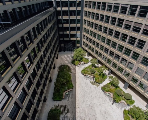 A to nie je všetko. Ďalších až 70 percent pitnej vody sa v porovnaní so štandardnou spotrebou ušetrí v umývadlách a sprchách. A závlaha zelene na ploche približne tisíc štvorcových metrov, vrátane rozľahlého zeleného átria, je zabezpečená výlučne dažďovou vodou. Budova za tento úsporný režim vďačí premysleným stavebným riešeniam a technológiám, prevádzkovým opatreniam, zameraným na udržateľnosť a tiež dátam.