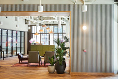 Poskytnite zamestnancom uvoľnené prostredie, ktoré im pomôže vypnúť, aktívny dizajn, ktorý im pomôže natiahnuť sa, a spoločenské priestory, ktoré ich budú spájať. Zvýšte produktivitu vďaka optimalizovanej teplote, osvetleniu a kvalite vzduchu, ktoré sú podporované inteligentnými kancelárskymi technológiami.